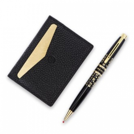 G289554 직장인선물 고급 금장 훈민정음 볼펜 순금판 천연소가죽 각인 고급 카드지갑 명함지갑