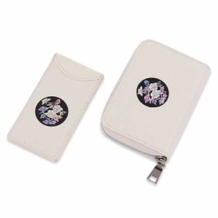 • 목단 나전칠기 한지가죽 멀티 동전지갑 머니클립 명함지갑 지폐보관 아이보리 여성 선물 (외국인선물) (+0원)