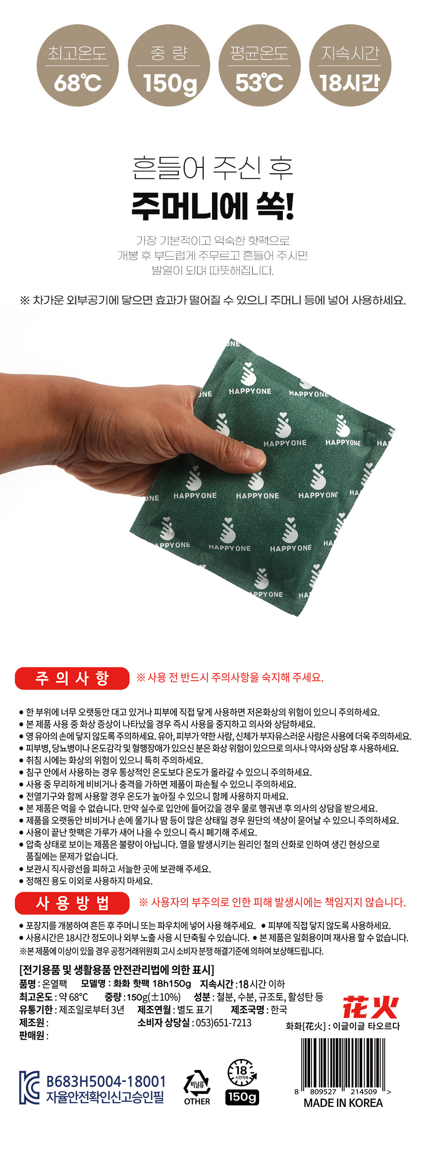 • 모델명 국산 화화 흔드는 핫팩 150g