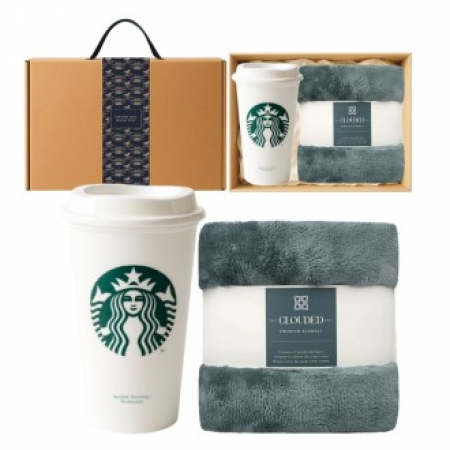 • 스타벅스 리유저블 그란데컵 473ml + 프리미엄 극세사 담요 고급띠지 손잡이 기프트박스세트 (+0원)