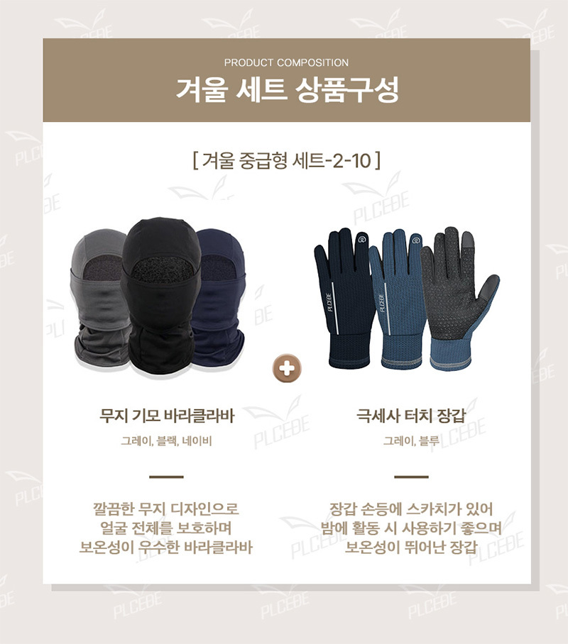 플씨드 무지 기모 바라클라바+플씨드 극세사 니트 터치 장갑 2종세트 [핫팩증정] #2
