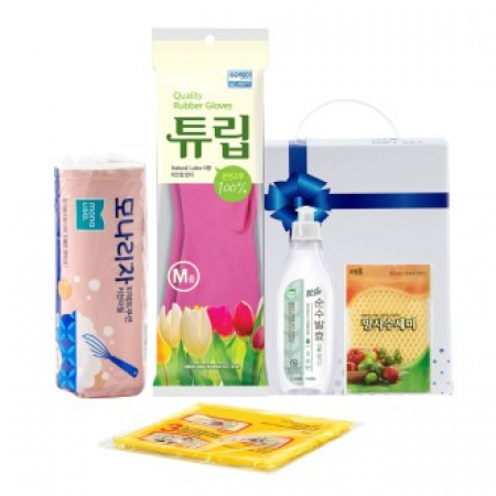 • 구성 참그린 식물 친환경주방세제 300g 1개, 튜립고무장갑(37cm) 1개, 크린홈 망사수세미(29×29cm) 1개, 독일행주 (38×40cm) 1개, 모나리자 키친타올 50매