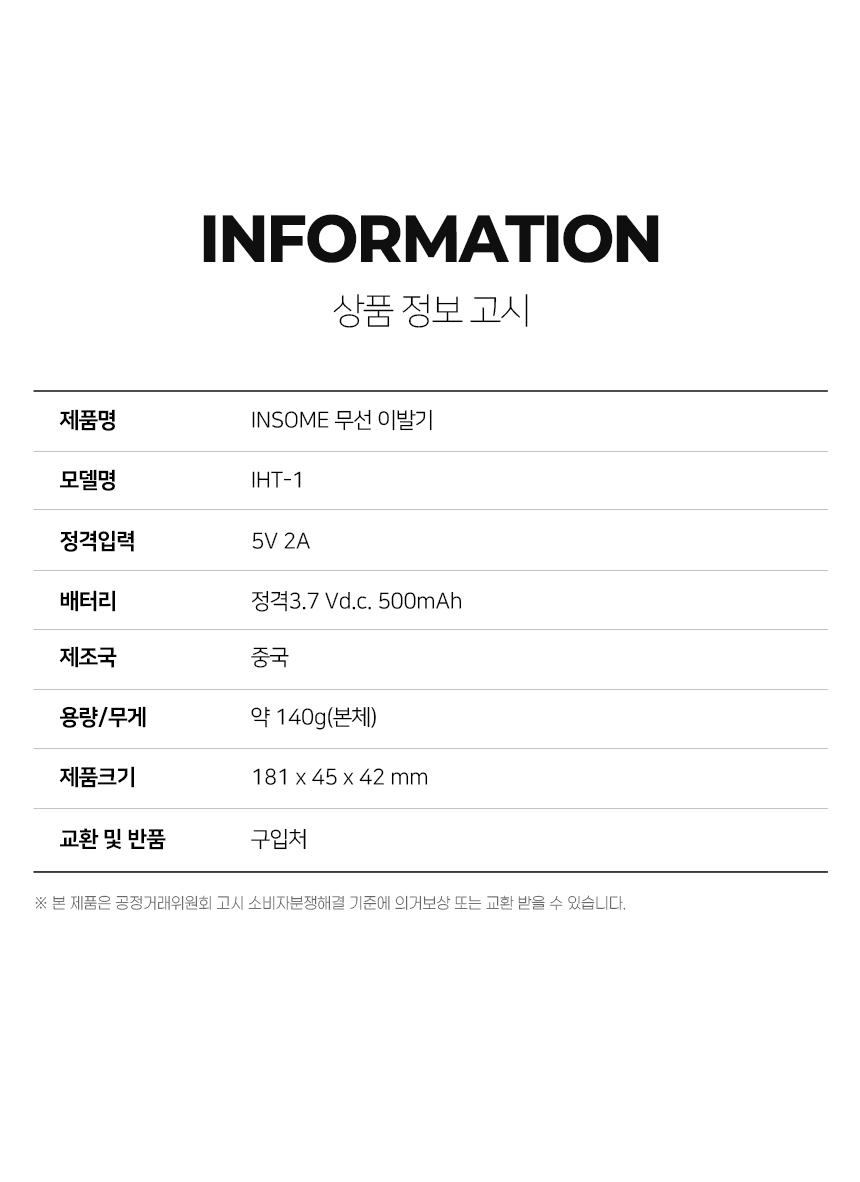 인썸 무선 이발기 IHT-1 요약정보 및 구매