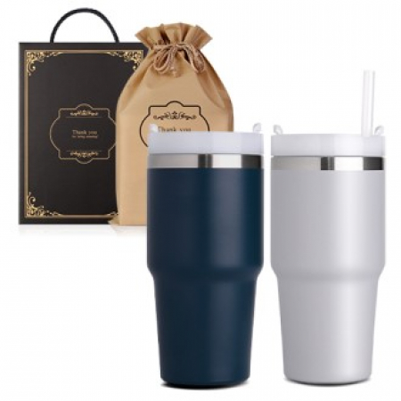 G293517 텀블러 2개 선물세트 600ml 투톤 이중진공 빨대텀블러