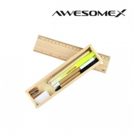 • 어썸엑스 나무 필통 문구세트 207호 (샤프볼펜) (+0원)