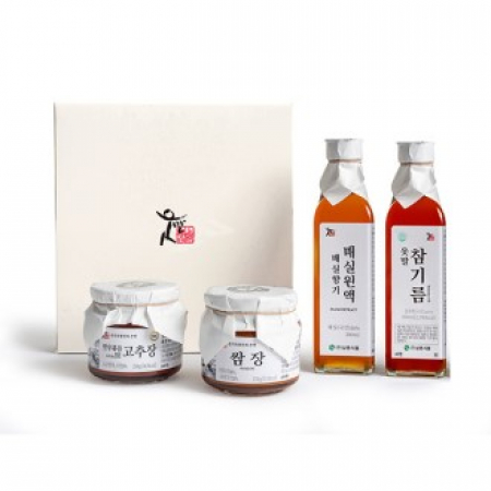 • 구성 쌈장 250g, 한우볶음고추장250g, 웃말참기름300ml, 매실원액300ml
