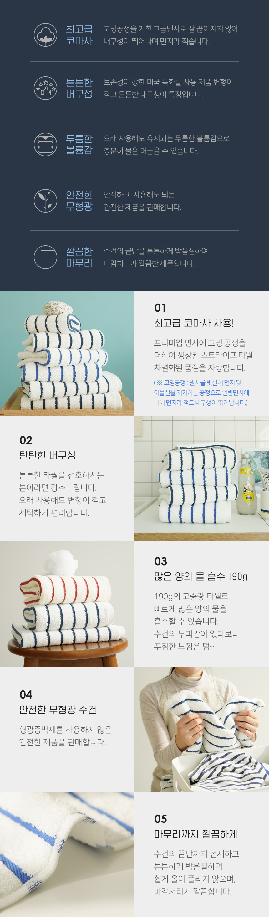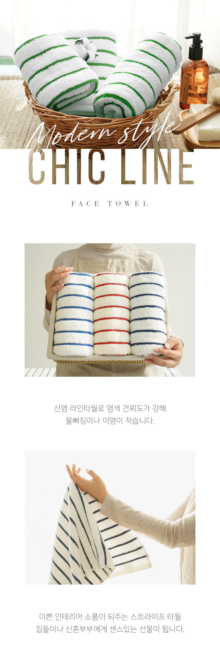 • 모델명 국내공정 타월톡톡 시크라인 코마사 190g 스트라이프 호텔수건 세면타올