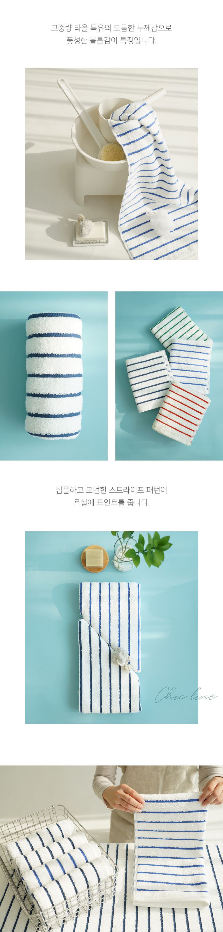 국내공정 타월톡톡 시크라인 코마사 190g 스트라이프 호텔수건 세면타올