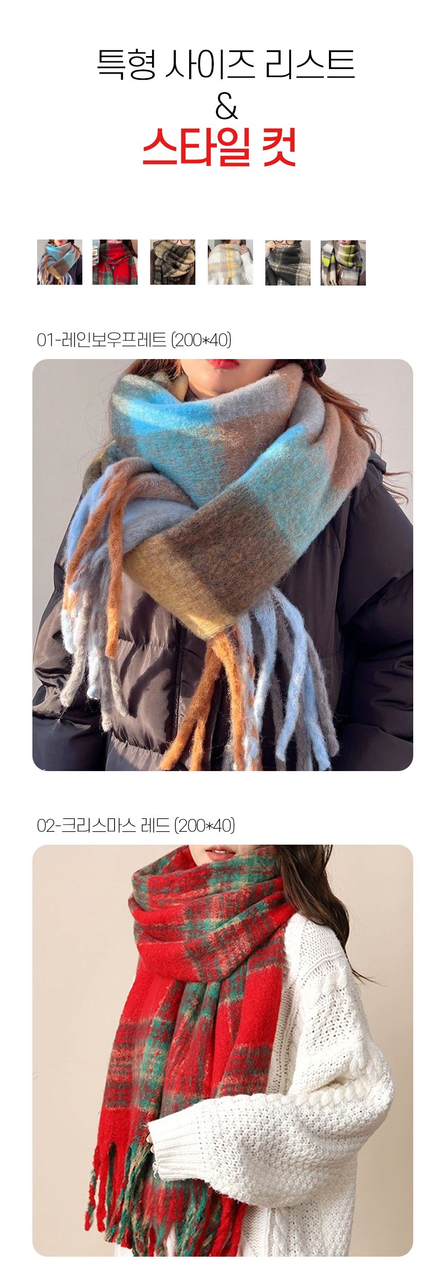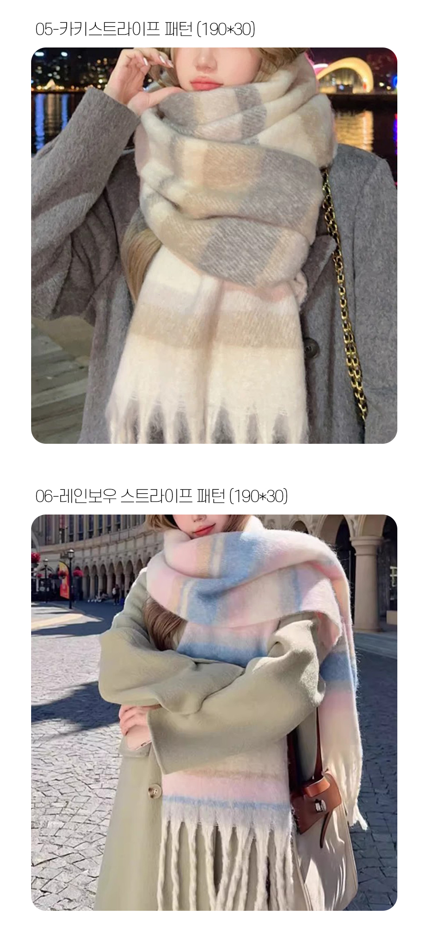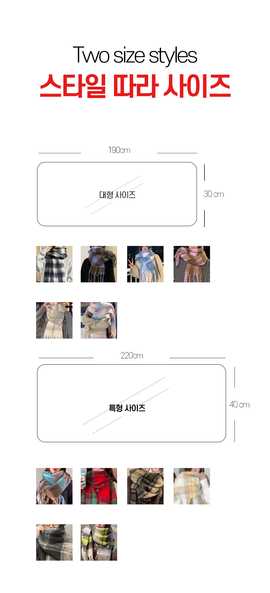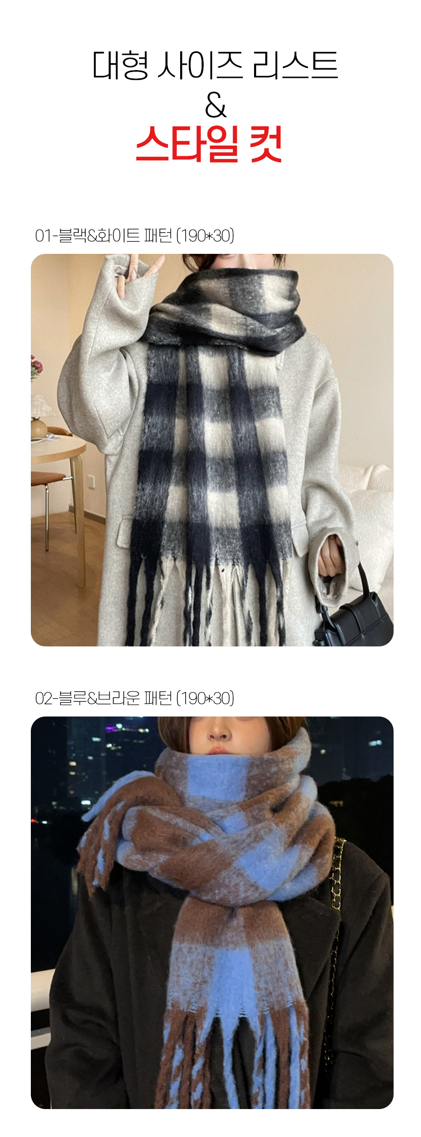 • 남녀공용 포근한 니트 목도리 빅사이즈 롱 와이드 소프트 캐시 체크 머플러 넥워머 (+0원)