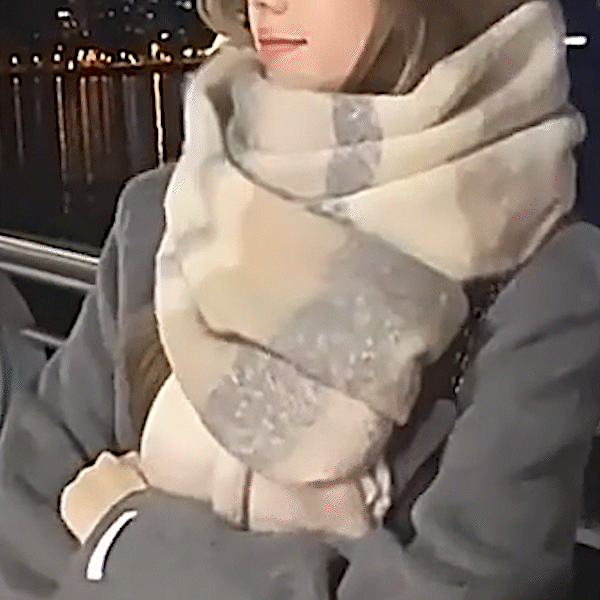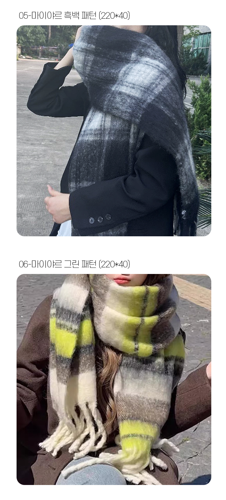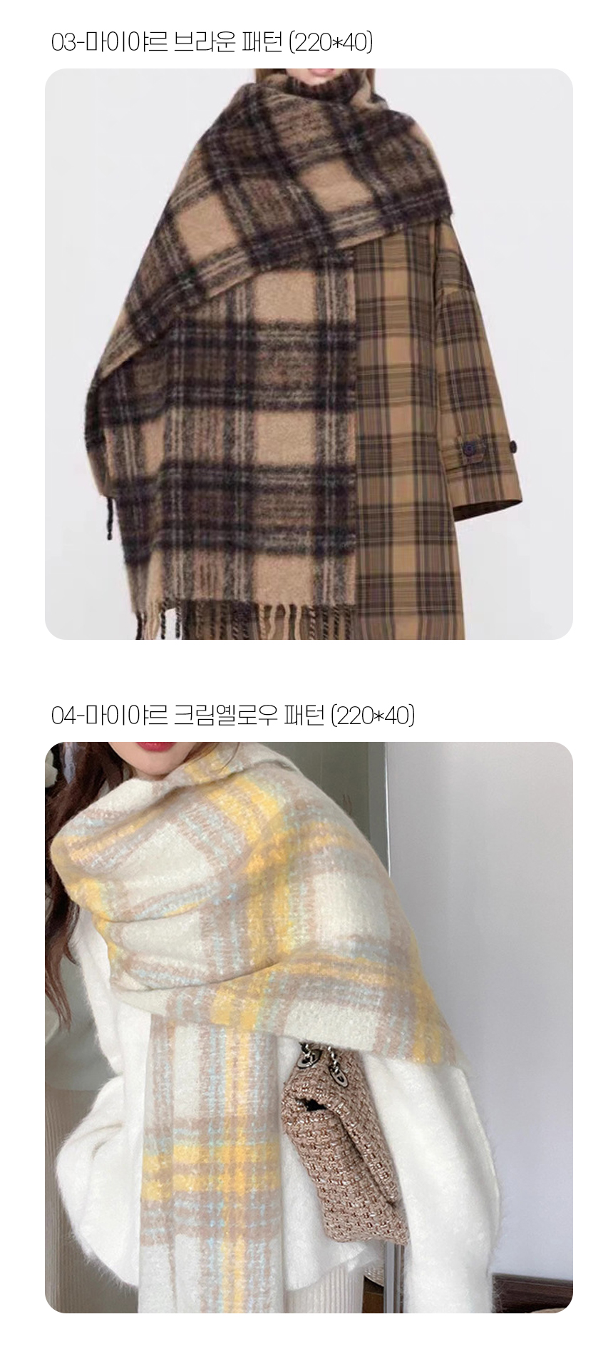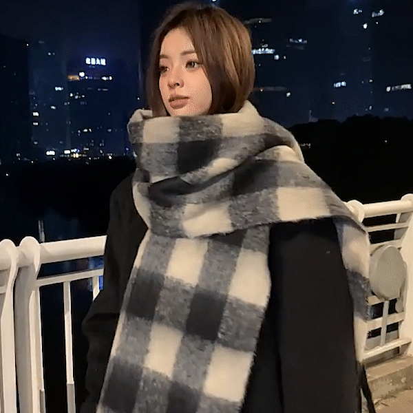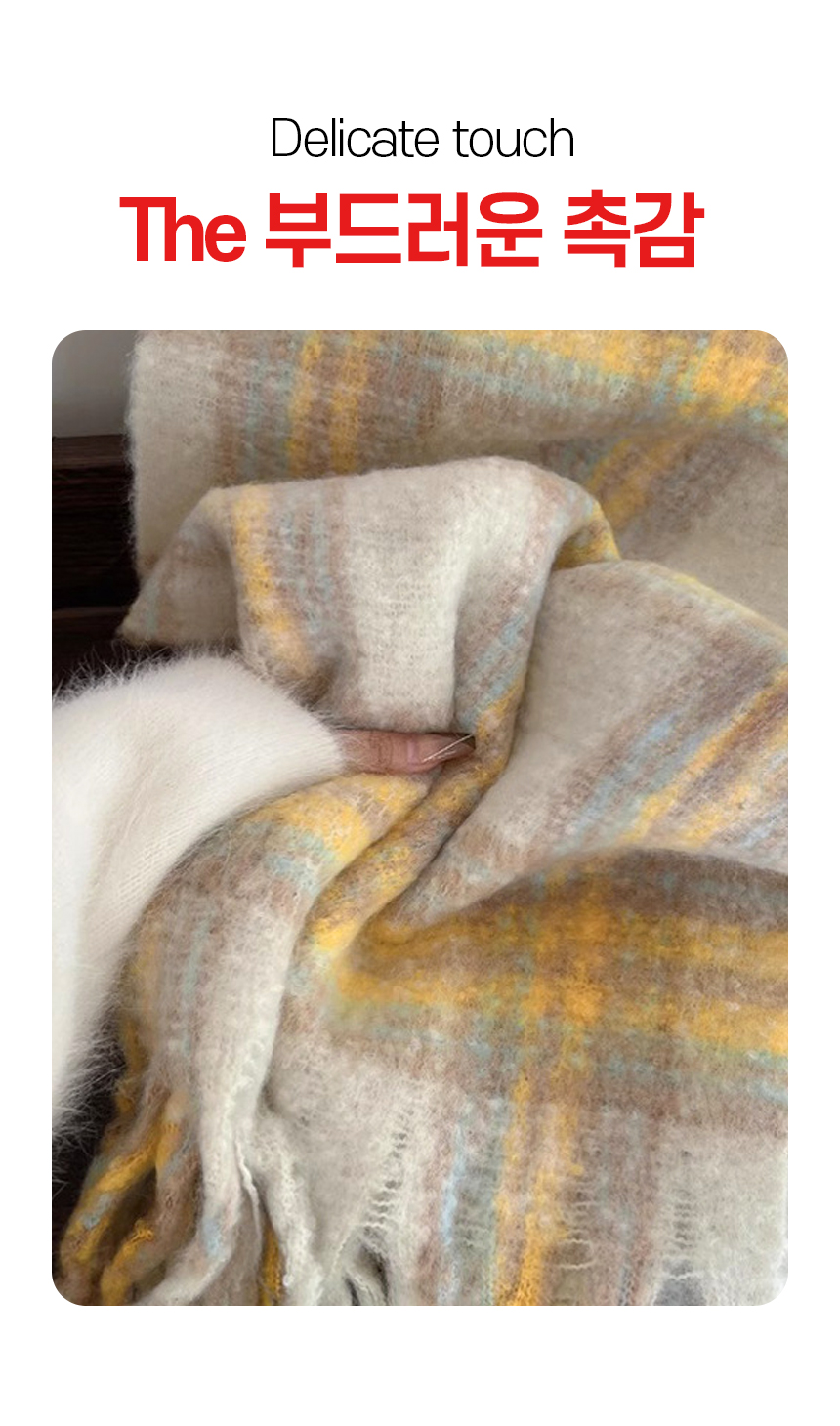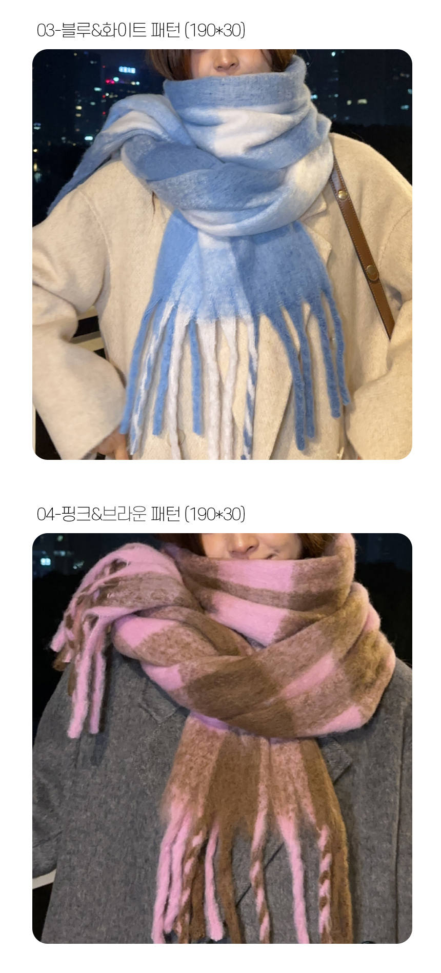 • 남녀공용 포근한 니트 목도리 빅사이즈 롱 와이드 소프트 캐시 체크 머플러 넥워머 (+0원)