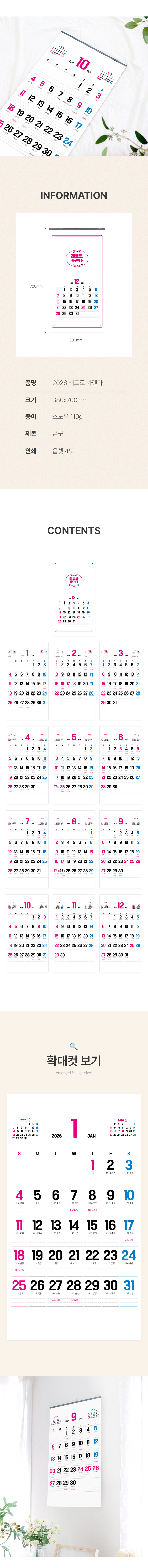 • 벽걸이달력 레트로 카렌다 380X700 (+0원)