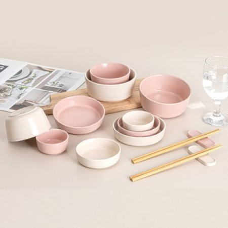 G300987 퀸나 라운드 홈 14P세트 2인 핑크+아이보리