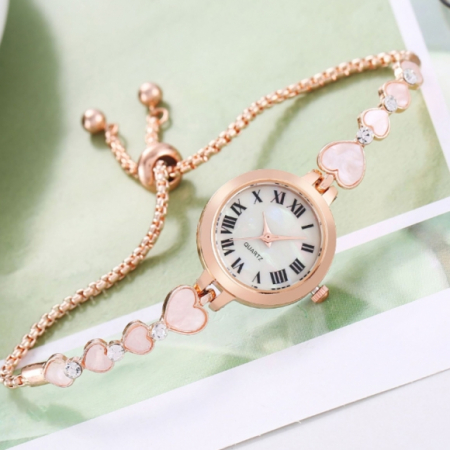 심플 하트 슬라이드 여성 손목시계(로즈골드)