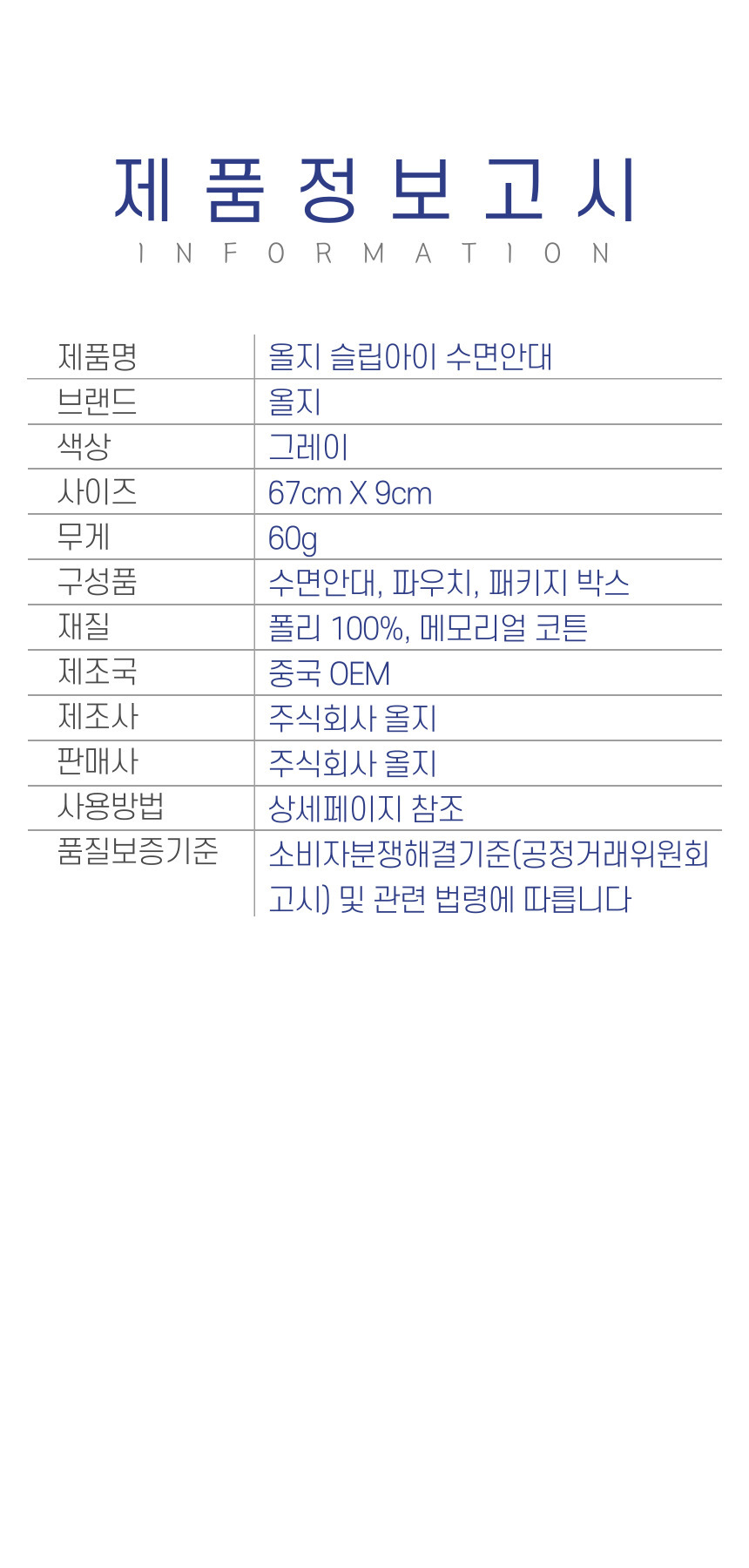 • 구성 수면안대, 파우치, 패키지 박스