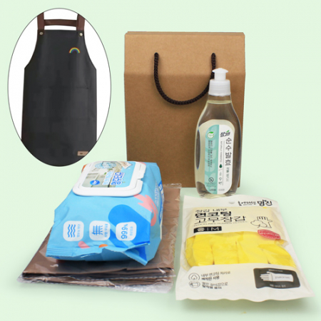 G307331 세균닦는 도톰한 행주티슈 70매+앞치마+참그린 주방세제 용기+면코팅고무장갑