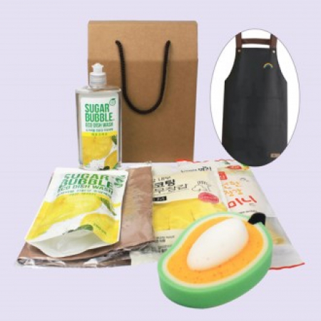 • 구성 앞치마+슈가버블 주방세제 용기 280ml+슈가버블 주방세제 리필 + 면고팅고무장갑+단미니고무장갑+과일수세미+끈케이스