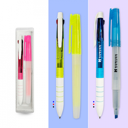 • 모델명 4링3색 투명볼펜+핫트 네오 형광펜 세트