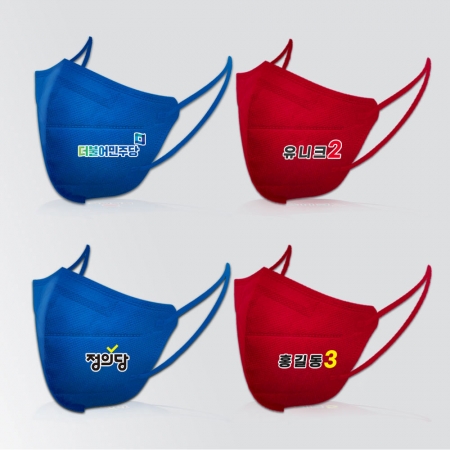 • 로고인쇄 컬러 마스크 선거 홍보 마스크 단면인쇄 양면인쇄 국내생산 (대형) (빨강, 파랑) [전사인쇄] (+0원)