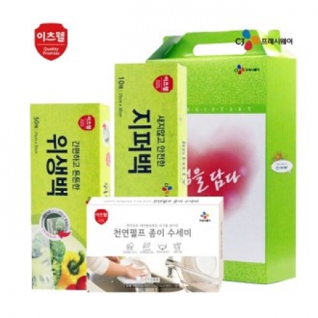 CJ이츠웰 위생백(대),지퍼백(대),종이수세미5매 3종세트