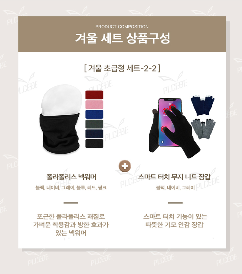 • 플씨드 무지 니트 터치 장갑 + 폴라폴리스 넥워머 세트 (+0원)