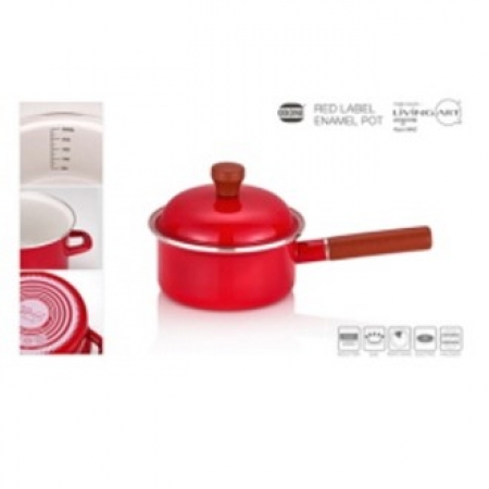 G210762 리빙아트 옥슨 레드라벨 1T 법랑 냄비 18cm 편수