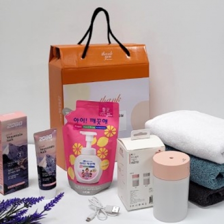G218546 선물세트5종 아이깨끗해 핑크소금 치약 가습기 타올 타월
