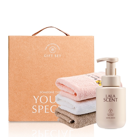 • 모델명 라라앤모어 스페셜 선물세트 2P 라라센트 비건 퍼퓸핸드워시 상탈우드 + 호텔타올
