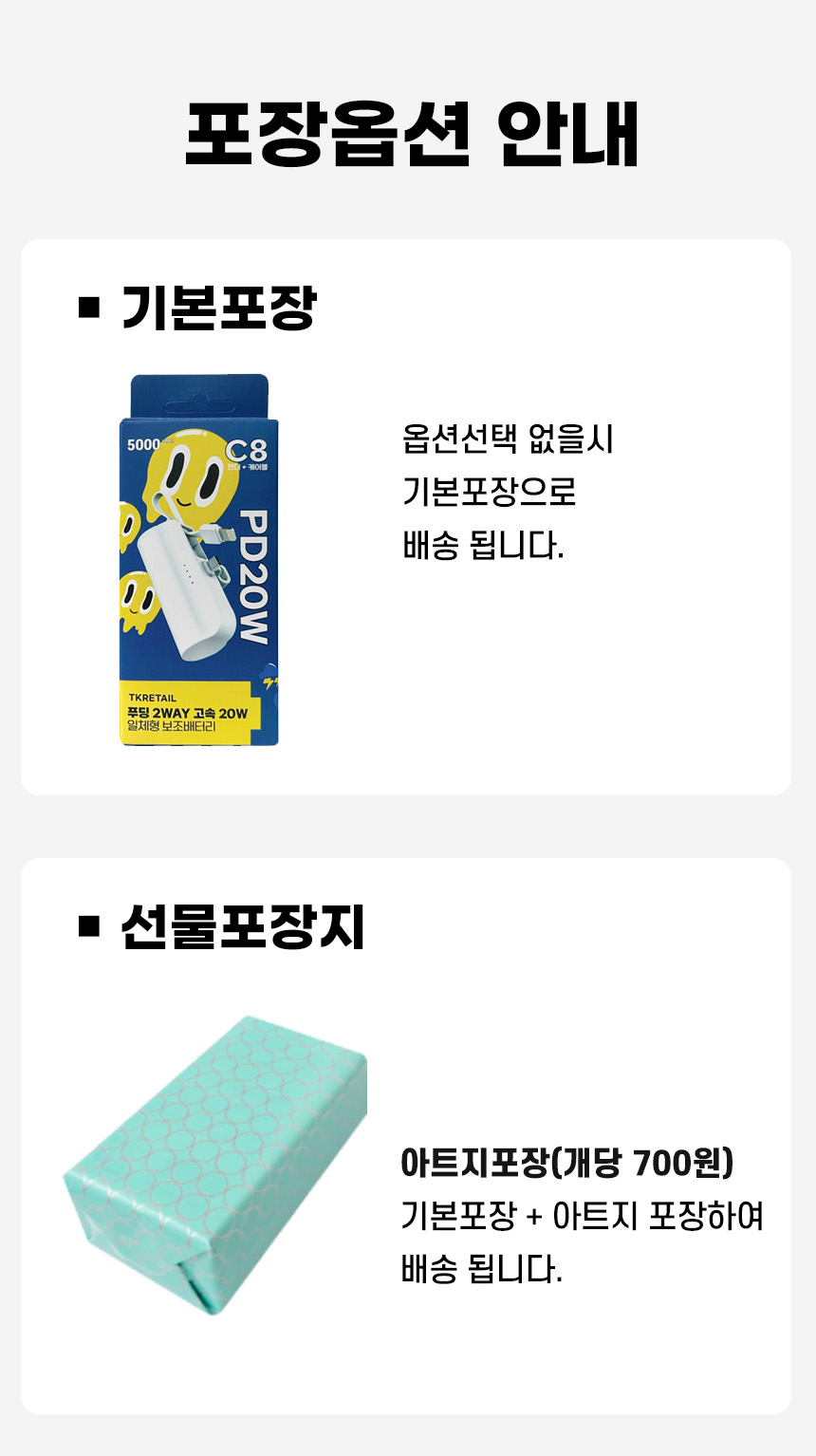 • TKR 고속20W 푸딩 2WAY 일체형 보조배터리 5000mAh C타입 도킹 + 8핀 케이블 (+0원)
