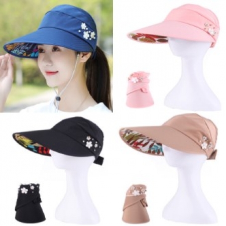 G244844 플라워 비즈 돌돌이 썬캡, 여름모자, 돌돌이썬캡, 햇빛가리개, 단체모자, 썬캡모자, 산악회모임 행사용 모자
