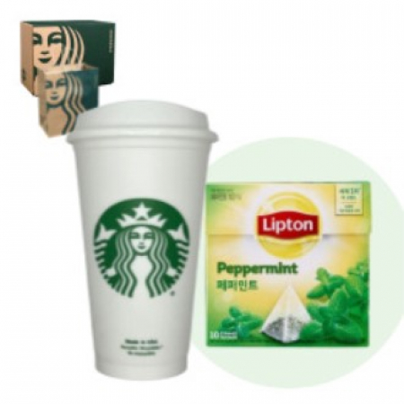 • 스타벅스 리유저블컵 그란데 립톤 페퍼민트 티 선물세트 (+0원)