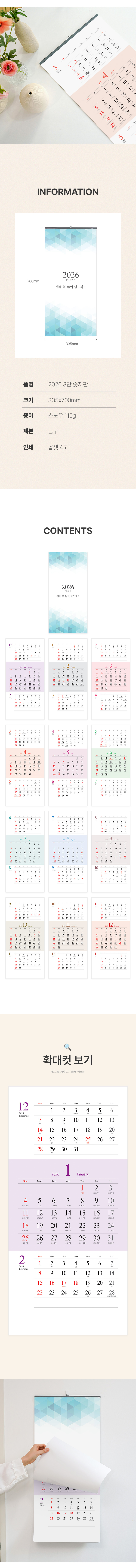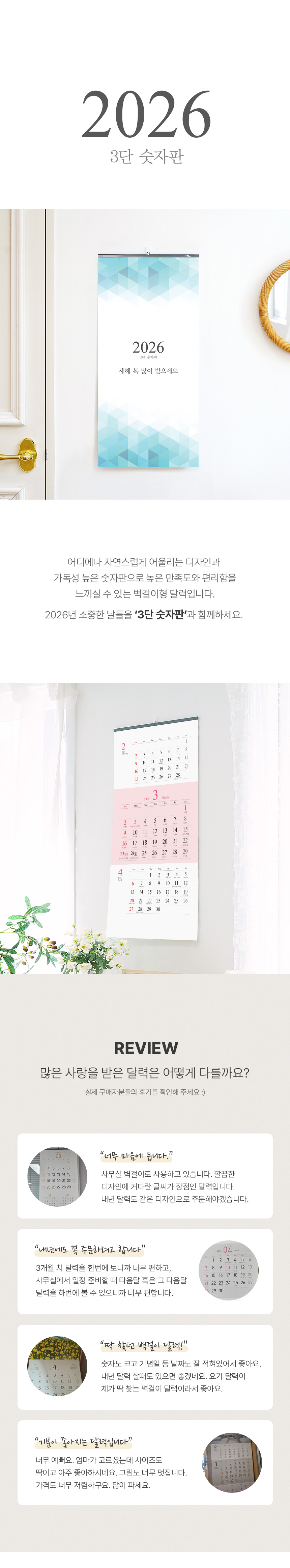 • 벽걸이달력 3단 숫자판 335x700 캘린더 (+0원)