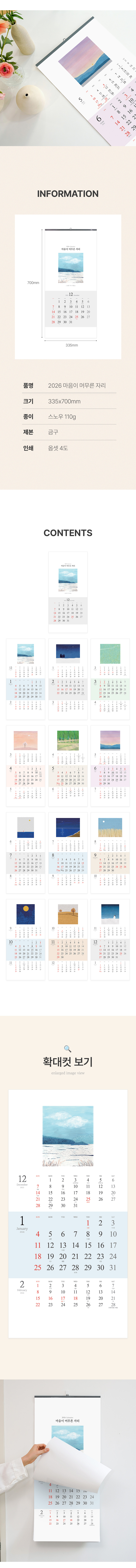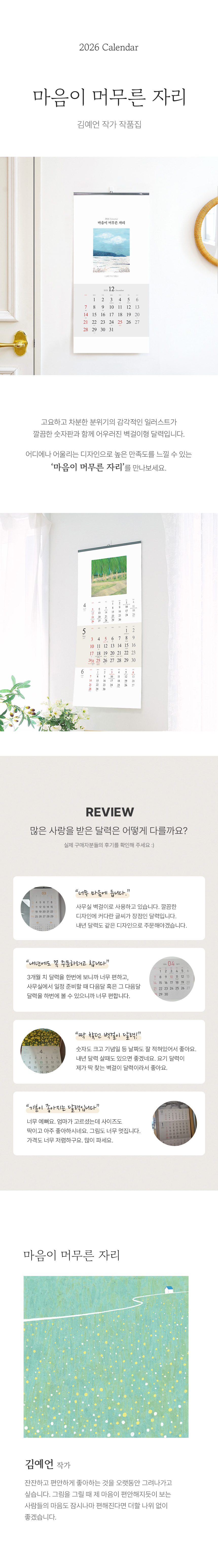 • 모델명 벽걸이달력 마음이 머무른 자리 335x700 캘린더