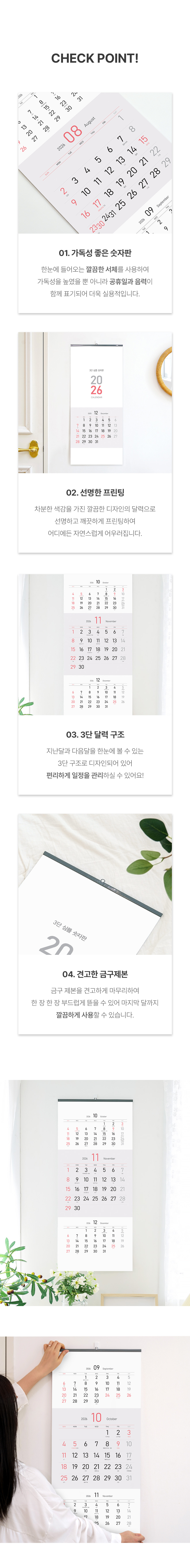 벽걸이달력 3단 심플 숫자판 345x780 캘린더 #2벽걸이달력 3단 심플 숫자판 345x780 캘린더 #3