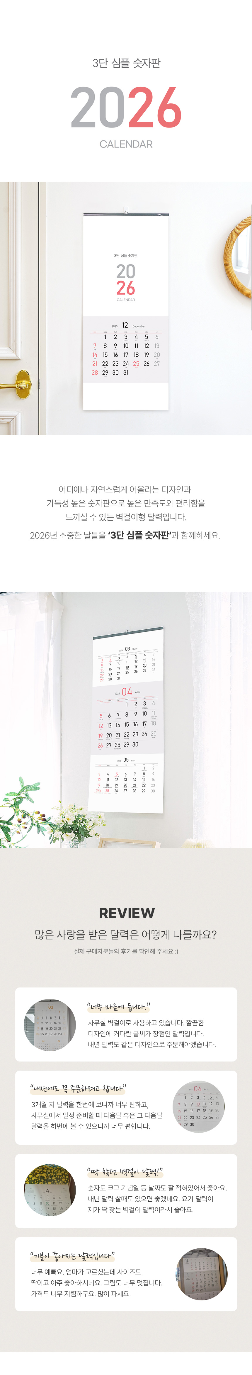 • 모델명 벽걸이달력 3단 심플 숫자판 345x780 캘린더