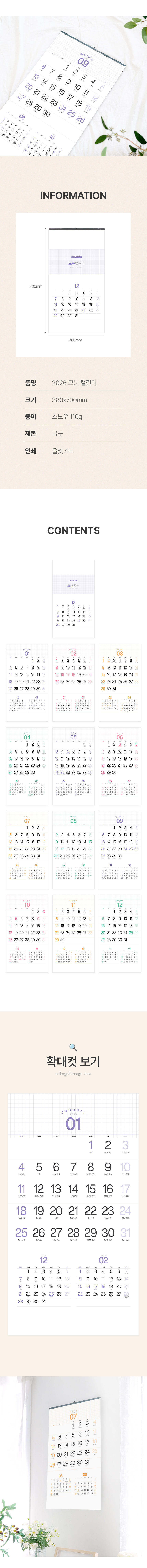 • 벽걸이달력 모눈 캘린더 380x700 카렌다 (+0원)