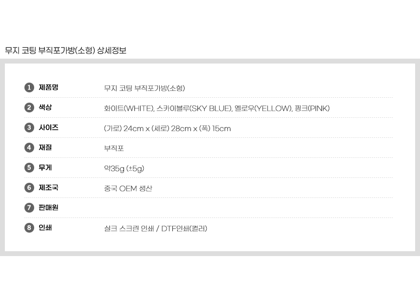 무지 코팅 부직포가방 소형 24x28x15 // 인쇄제작가능 요약정보 및 구매
