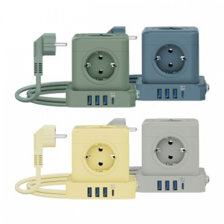 [에코너] MT04 전선형 1.8M 큐브 멀티탭 4000W 고용량 (5구/C타입포트/USB포트)