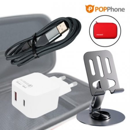 • 팝폰 여행용 파우치 선물 세트 360도 메탈 회전거치대(스마트폰/테블릿) 2in1초고속충전 케이블(60w) CS53 (+0원)
