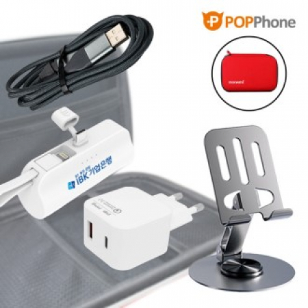 팝폰 여행용 파우치 선물 세트 초미니 도킹형 보조배터리 2in1초고속충전 케이블(60w) 360도 메탈 회전거치대(스마트폰/테블릿) CS53-2 요약정보 및 구매