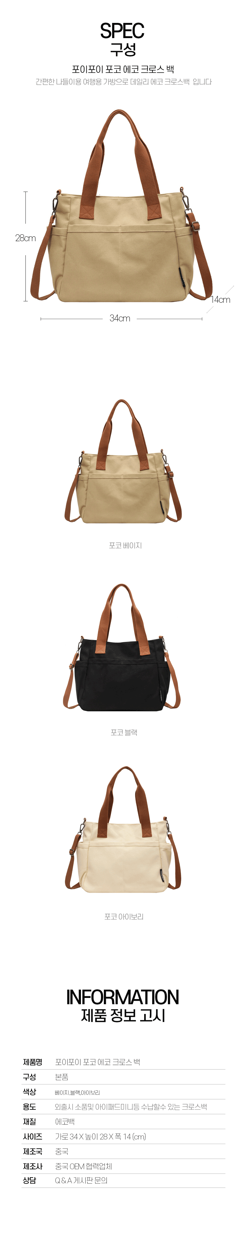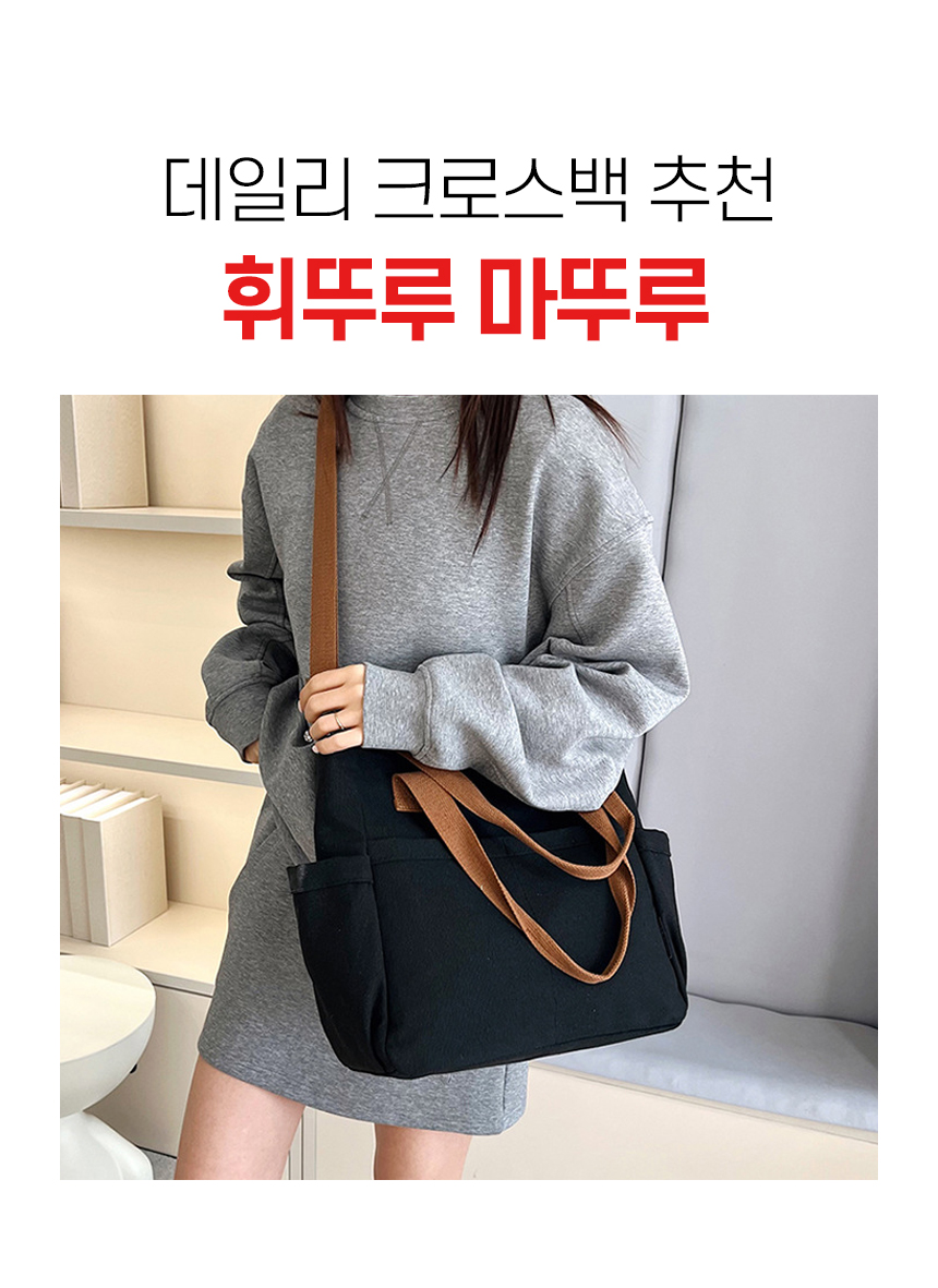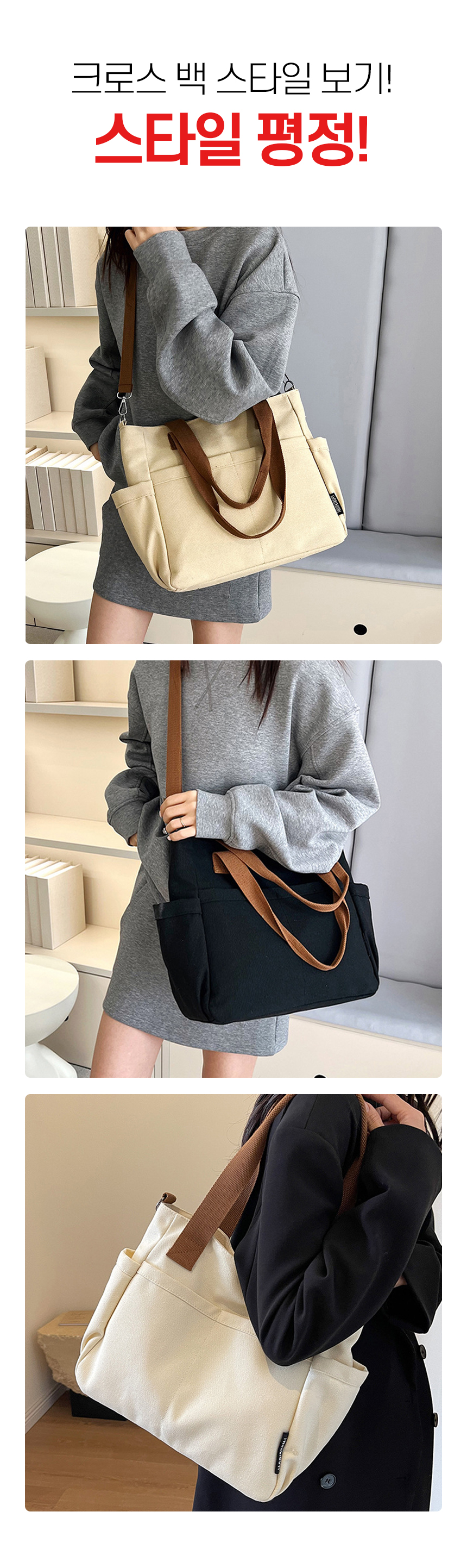 • 다용도 캐주얼 패션 솔리드 캔버스 백 숄더 토트 크로스 심플 컬러 에코 가방 (+0원)