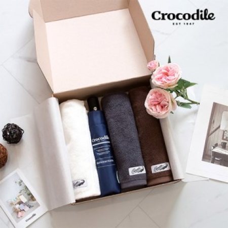 G276540 크로커다일 3단 레터링 암막 전자동 우산 + 심플 호텔 수건 3장