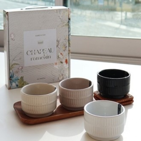 • 도자기 4P 세트 손잡이 칼라박스 홈세트 그릇 (+0원)