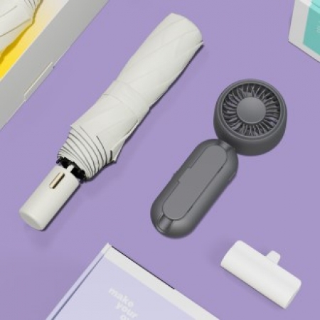 • 모델명 골드버튼 3단 자동 양우산 + 우산애착 미니 선풍기 + 보조배터리