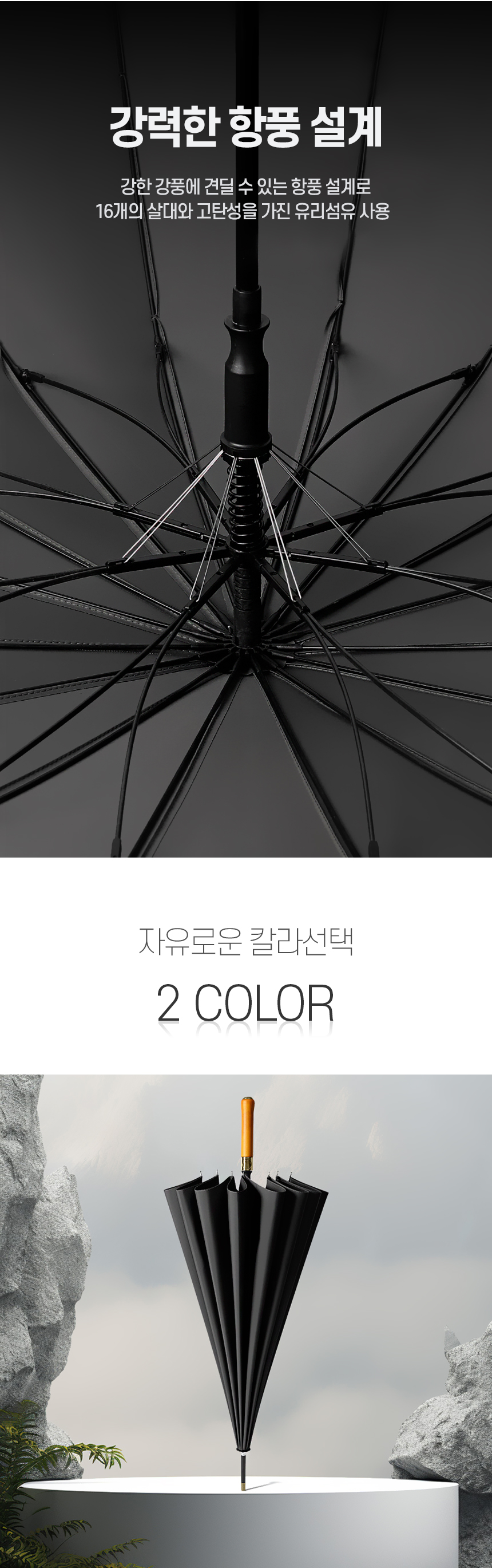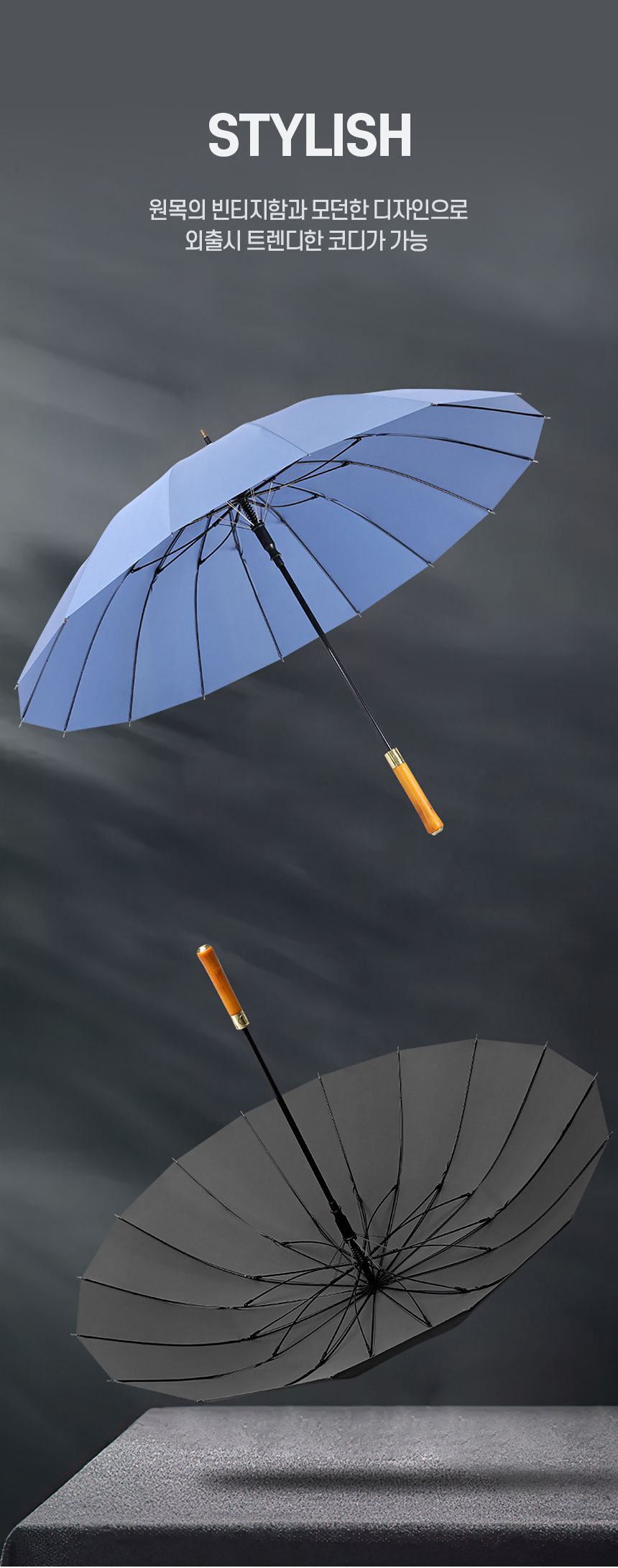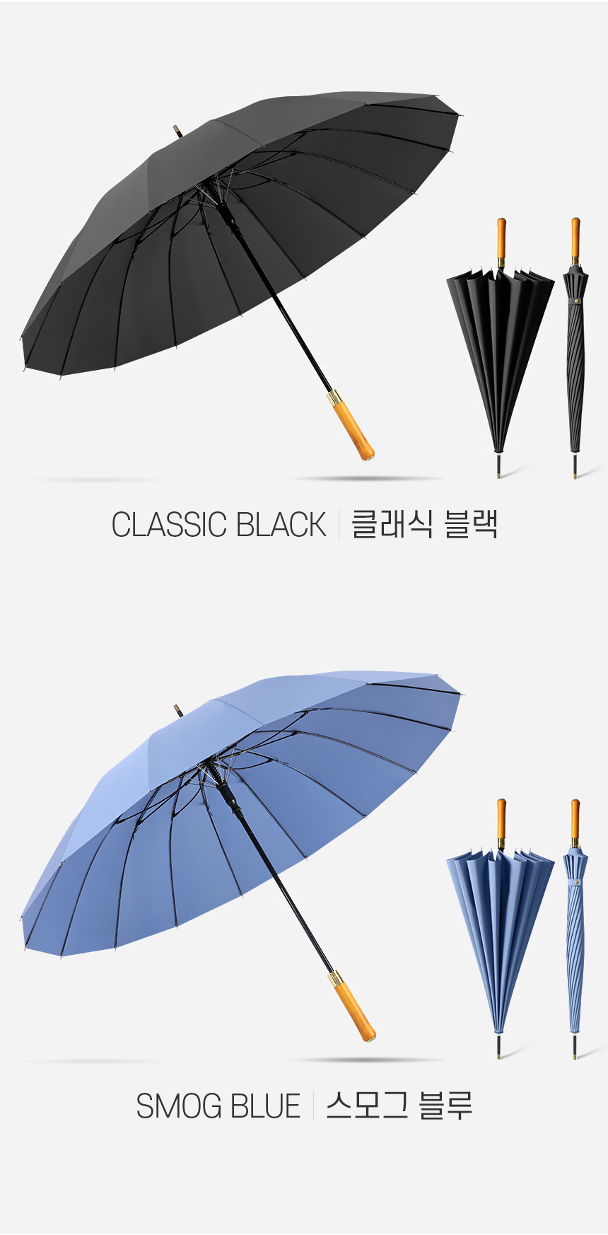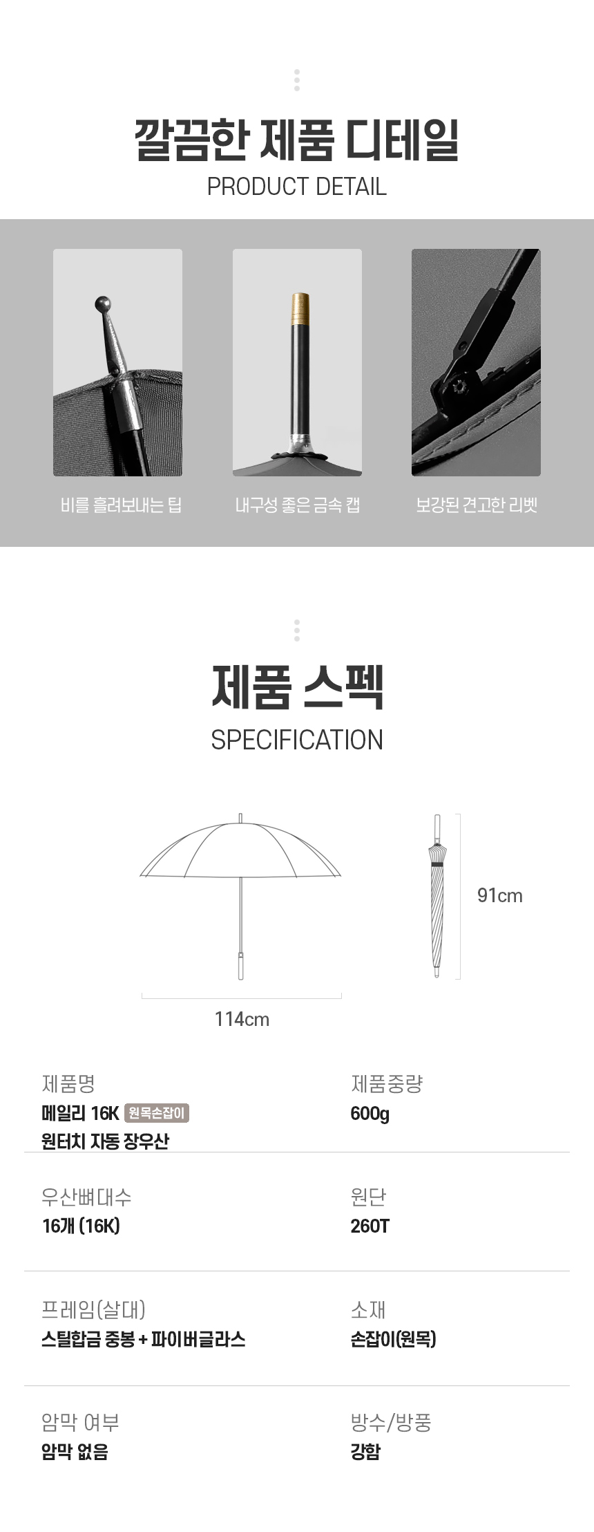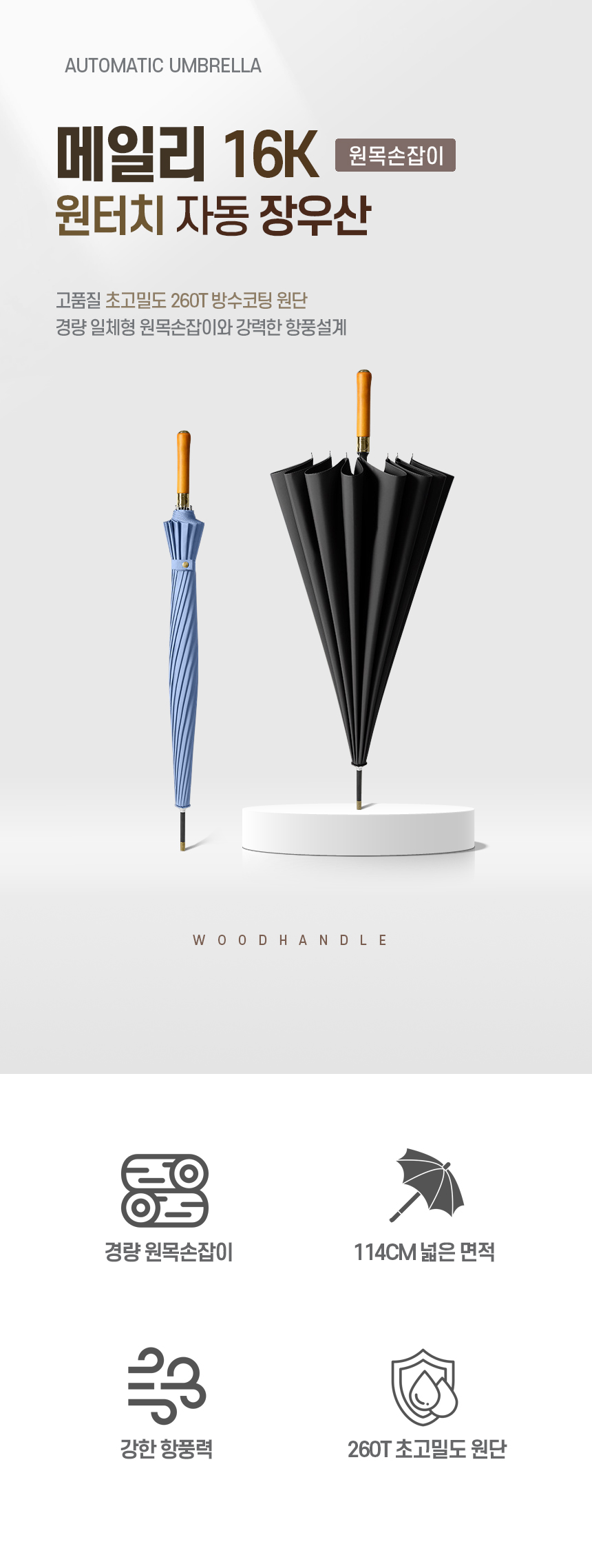 • 메일리 16K 원터치 자동 장우산 (원목손잡이/고밀도원단) (+0원)