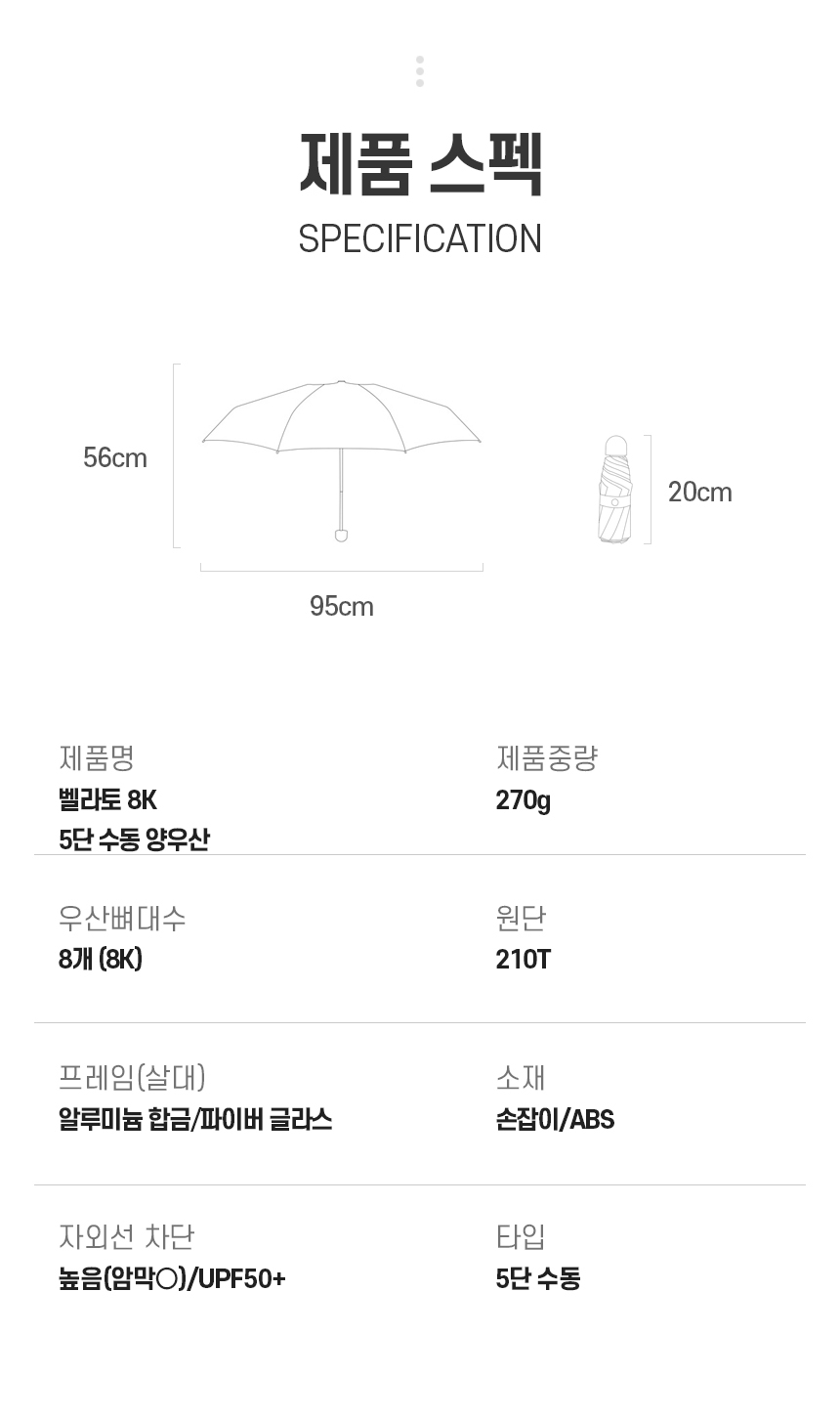 • 벨라토 8K 5단 수동 양우산 (UV 자외선 차단 UPF50+) (+0원)