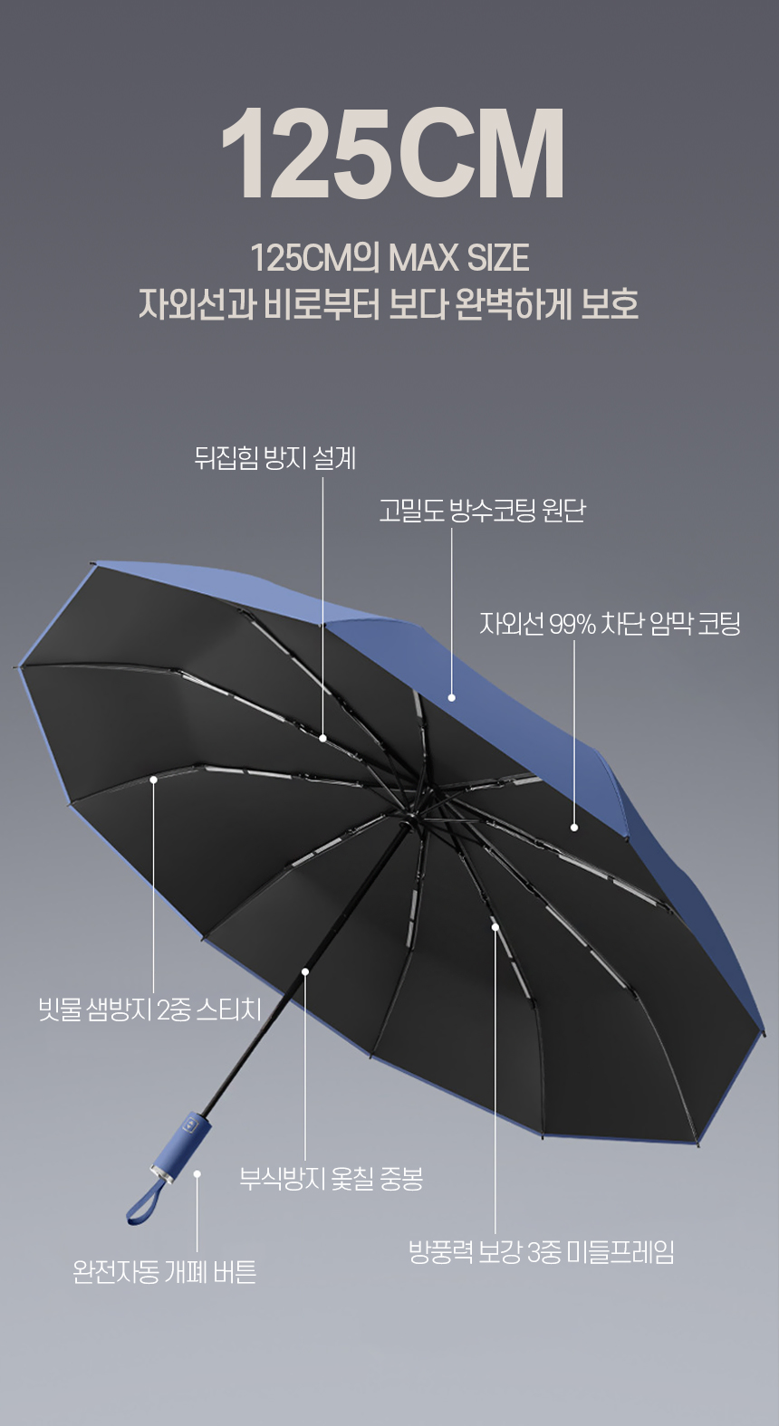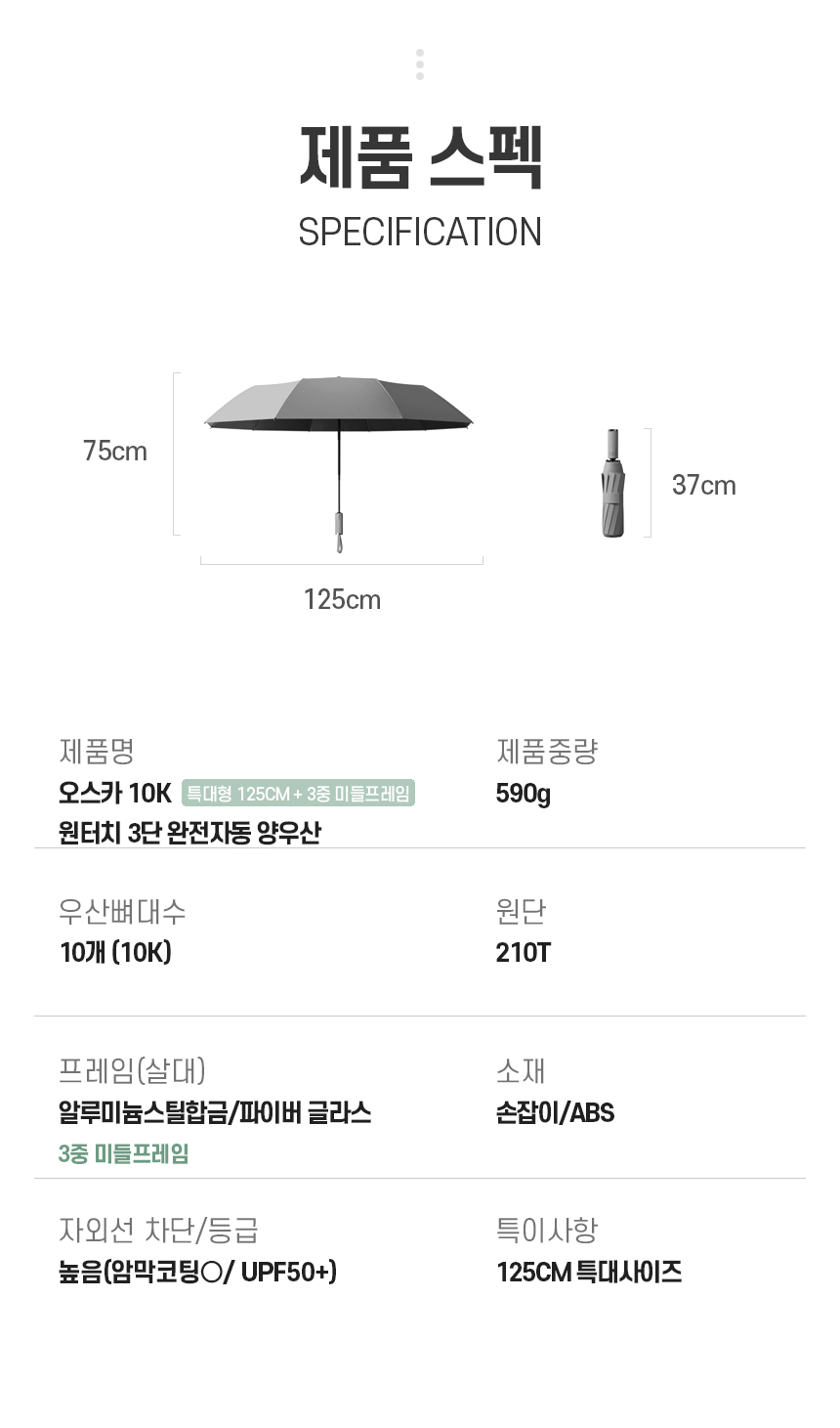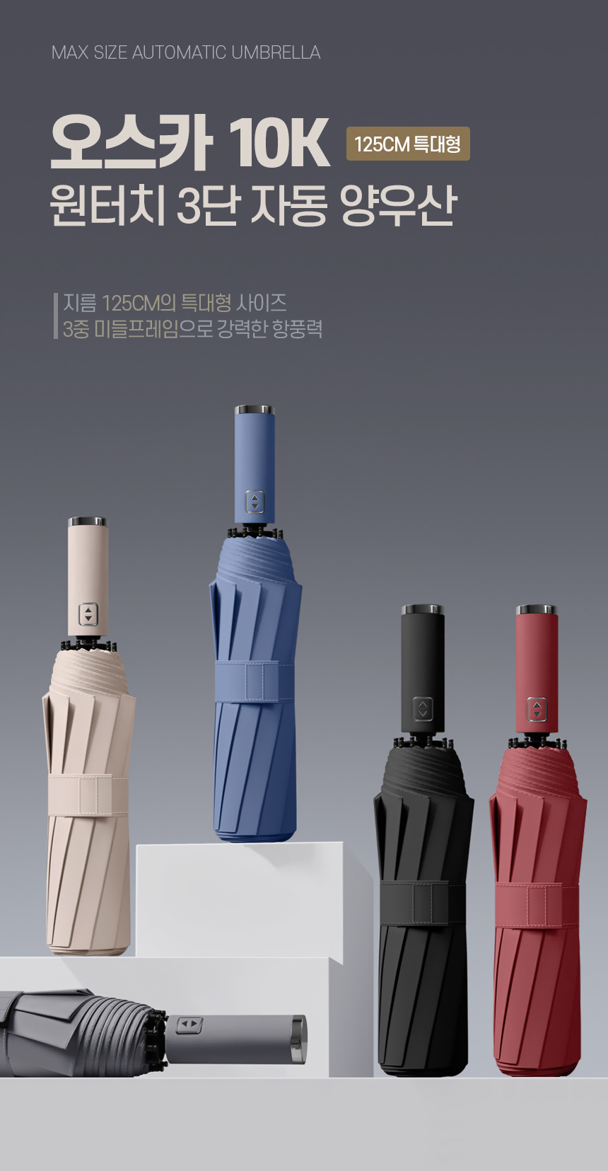 오스카 10K 빅사이즈 원터치 3단 완자동 양우산 (125CM/방풍 3중살대/UV 자외선 차단) 요약정보 및 구매