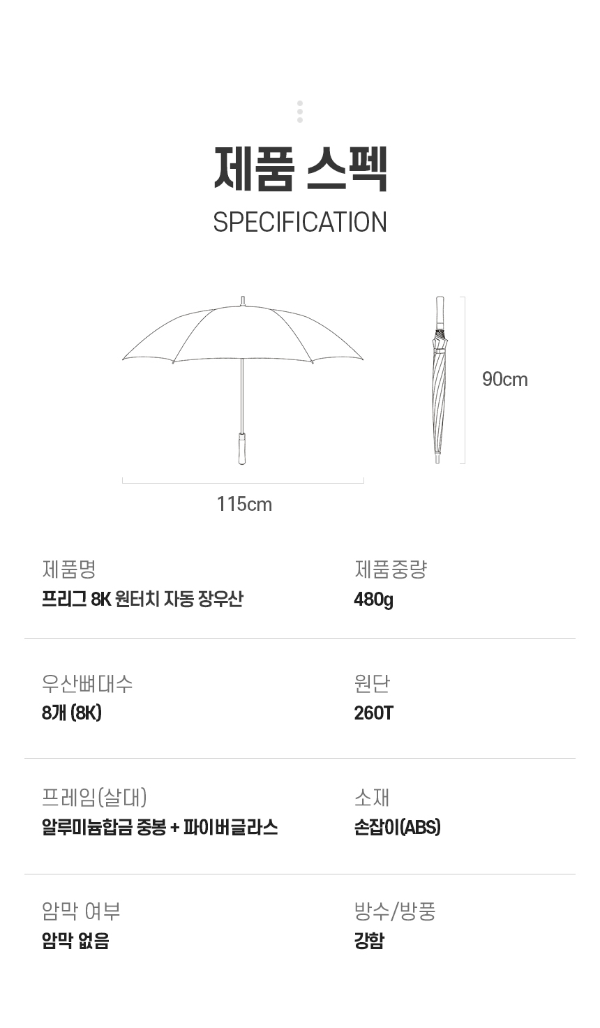 • 프리그 8K 원터치 자동 장우산 (고밀도원단) (+0원)
