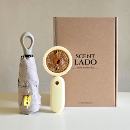 센트라도 미니넥밴드 선풍기+멀티고리 5단 양우산 세트