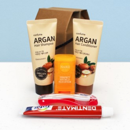 G278900 나드 썬스틱 + 과일나라 아르간 샴푸+컨디셔너 + 크리오 치약 + 고급접이식칫솔