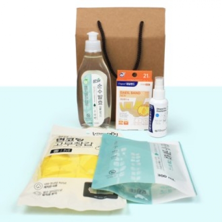 • 구성 참그린 주방세제290ml+리필300ml + 대일밴드 혼합 21매 + 메딕 소독용에탄올 스프레이 + 고무장갑 + 끈케이스